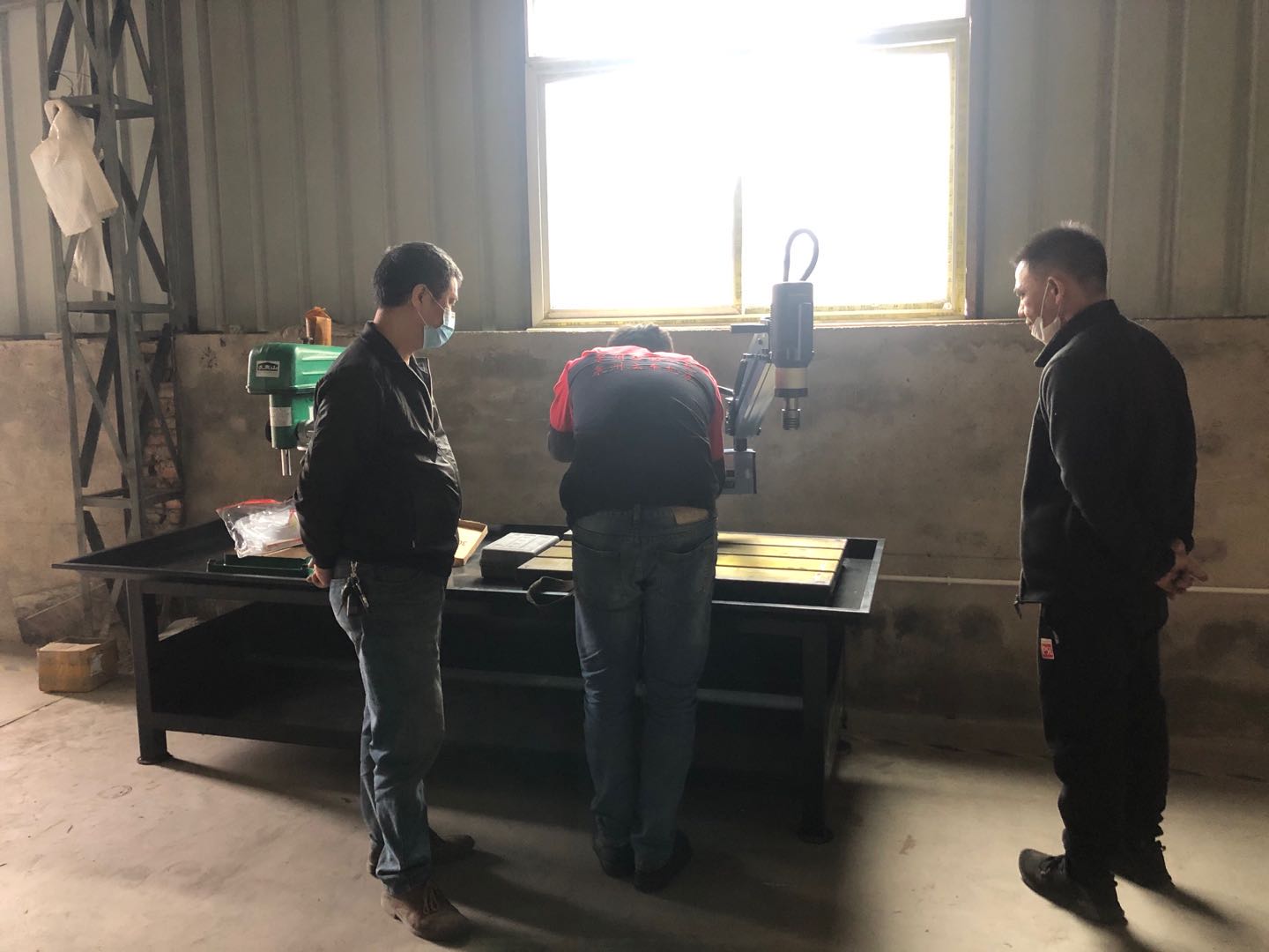 感謝李燕飛惠購搖臂攻絲機M20高速機武夷山臺鉆Z4116鑄造工作臺100KG三工位工作臺300KG吸盤